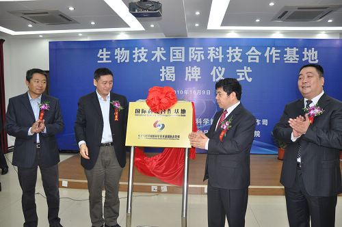 10月9日,科技部“生物技術(shù)國際科技合作基地” 揭牌儀式在集團(tuán)食品發(fā)酵院隆重舉行。科技部國際合作司靳曉明司長、綜合與計劃處張健處長、集團(tuán)陳鄂生董事長、食品發(fā)酵院蔡木易院長等出席了此次揭牌儀式。靳曉明司長和陳鄂生董事長共同為生物技術(shù)國際科技合作基地揭牌。