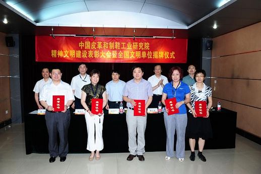 2012年6月8日,中國(guó)皮革和制鞋工業(yè)研究院召開精神文明建設(shè)先進(jìn)集體和先進(jìn)個(gè)人表彰大會(huì)暨全國(guó)文明單位揭牌儀式,集團(tuán)公司董事長(zhǎng)、黨委書記陳鄂生,黨委副書記、紀(jì)委書記梁江東,皮革制鞋院院長(zhǎng)、黨委書記楊承杰,副院長(zhǎng)田美,黨委副書記、副院長(zhǎng)宋昕以及集團(tuán)公司人力資源部負(fù)責(zé)同志及全院職工出席了會(huì)議。會(huì)議由皮革制鞋院宋昕主持。