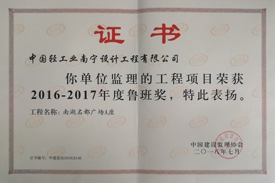 近日,海誠股份南寧公司監(jiān)理的工程項(xiàng)目—南湖名都廣場(chǎng)榮獲中國建設(shè)監(jiān)理協(xié)會(huì)授予“2016-2017年度魯班獎(jiǎng)”。魯班獎(jiǎng)是中國建筑行業(yè)工程質(zhì)量最高榮譽(yù)獎(jiǎng),這是公司繼廣西壯族自治區(qū)人民檢察院業(yè)務(wù)技術(shù)偵查綜合樓(2005年獲魯班獎(jiǎng))、廣西南寧市國土交易綜合樓(2011年獲魯班獎(jiǎng))后,再次獲此殊榮,具有里程碑的意義。