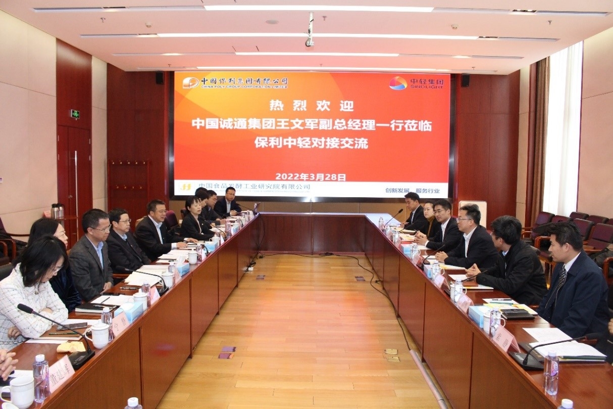 3月28日下午,保利中輕黨委副書記、董事、總經(jīng)理王珂靈在中國食品發(fā)酵工業(yè)研究院會見中國誠通控股集團(tuán)有限公司副總經(jīng)理王文軍一行,雙方就加強(qiáng)科技服務(wù)、工程全過程服務(wù)、股權(quán)處置和資本運(yùn)作等方面合作進(jìn)行了深入交流。
