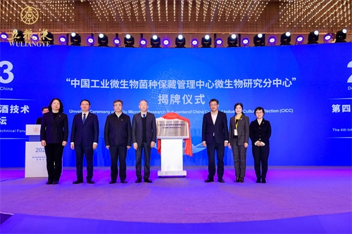 開幕式上,中國食品發(fā)酵工業(yè)研究院與宜賓五糧液股份有限公司共建的“中國工業(yè)微生物菌種保藏管理中心白酒微生物研究分中心”揭牌儀式順利舉行,保利中輕副總經(jīng)理,中國食品發(fā)酵工業(yè)研究院黨委書記、董事長肖丹與宜賓五糧液股份有限公司總工程師楊韻霞共同揭牌。安勝杰與中國酒業(yè)協(xié)會理事長宋書玉,農(nóng)業(yè)農(nóng)村部中國農(nóng)村技術(shù)開發(fā)中心副主任張松梅,五糧液集團(tuán)(股份)有限公司黨委書記、董事長曾從欽,中國工程院院士、江南大學(xué)校長陳衛(wèi)共同見證。“中國工業(yè)微生物菌種保藏管理中心白酒微生物研究分中心”是按照國家標(biāo)準(zhǔn)菌種資源庫組建的白酒行業(yè)最大的菌種保藏平臺,該平臺現(xiàn)已收藏五糧液釀造微生物菌種400余種、1000余株、20000余份備份,為五糧液乃至中國白酒技術(shù)創(chuàng)新及生產(chǎn)應(yīng)用提供全面的菌種資源。