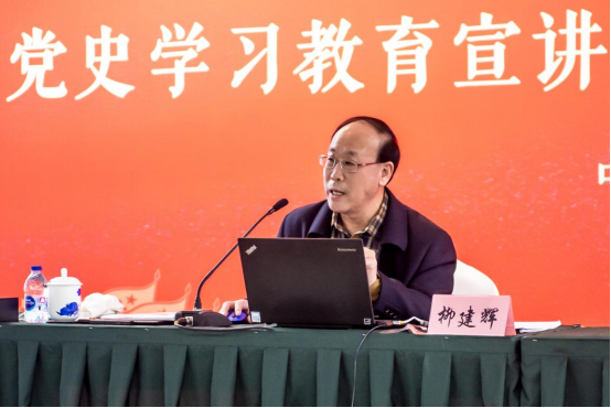 會上,柳建輝教授以《百年大黨的發(fā)展歷程與黨史學(xué)習(xí)教育》為主題,圍繞學(xué)習(xí)領(lǐng)會習(xí)近平總書記關(guān)于黨的歷史的重要論述,深刻闡釋了在全黨開展黨史學(xué)習(xí)教育的重大意義,系統(tǒng)回顧了百年來我們黨團(tuán)結(jié)帶領(lǐng)人民走過的光輝歷程、取得的輝煌成就、作出的杰出貢獻(xiàn),全面介紹了開展黨史學(xué)習(xí)教育的主要內(nèi)容和重點任務(wù)。